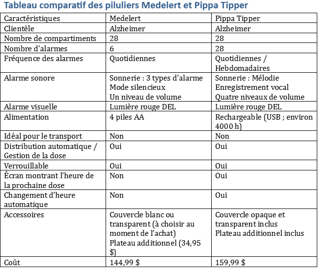 Entre le TabTime Medelert et le Pippa Tipper, le choix peut être difficile. Consultez la capture d’écran ci-dessous pour vous aider à prendre une décision.